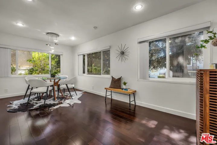 An abundance of natural light, coastal breezes, and tree-top views greet you as you enter this quiet and private two-bedroom, two-bathroom townhome North of Wilshire in the coveted Franklin School District. The living room boasts dramatic two-story ceilings and large glass sliding doors which open to generously sized balcony, set back from and above the street level. Easy flow for entertaining, nicely updated kitchen with stainless steel appliances, breakfast bar opens to the casual dining area and intimate bonus space also surrounded by windows and exterior greenery. Full bathroom and laundry closet complete the first level living space. Upstairs are two generously proportioned, light filled bedrooms and full bathroom with dual vanity. Two side-by-side, covered parking spaces and large, dedicated storage room for this unit. Located in the heart of Santa Monica!