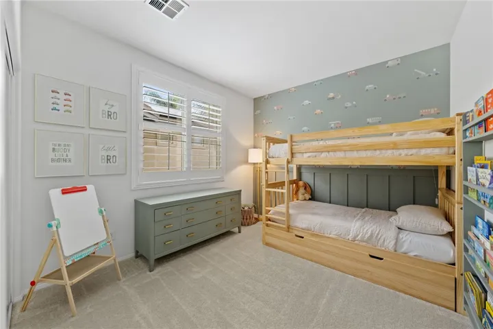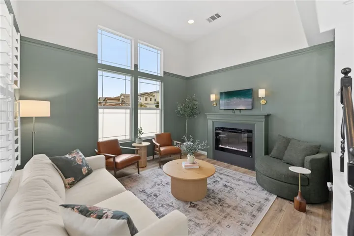 WOW!!! This home is design magazine worthy with stunning modern updates, abundant natural light, light-toned LVP flooring, plush neutral carpet in the bedrooms, and plantation shutters throughout. The formal living room offers a sophisticated, moody vibe with richly painted walls and a cozy fireplace, while the formal dining room impresses with soaring two-story ceilings, picture-frame molding, and easy access to the kitchen. The inviting family room features a built-in media center with cabinets and shelving, along with a second fireplace for cozy gatherings. The showstopping kitchen is a true dream with quartz countertops, a two-level island with bar seating, pullout cabinetry and lazy Susan, glass-front cabinets, luxe gold hardware and faucet, a six-burner range, stainless steel appliances, dual built-in trash receptacles, floating shelves, a statement backsplash, and designer pendants and recessed lighting. Upstairs, the must-see loft includes a custom-built-in divider creating the perfect home office space, along with additional shelving and cabinetry. The primary suite is a private retreat with a sitting area and spa-inspired en suite bath featuring a soaking tub, walk-in shower, dual sinks, vanity area, and mirrored walk-in closet. Two secondary bedrooms offer mirrored closets, neutral carpet, and easy access to a full bathroom with dual sinks. Outdoors, unwind in the spacious backyard complete with a firepit, custom concrete, grassy play area, tropical landscaping, and a slatted Alumawood patio cover, with rare privacy thanks to no neighbors on one side and distant rear neighbors. Located within the boundaries of Great Oak High and just minutes from parks, the clubhouse, Pechanga Resort & Casino, and Old Town Temecula, this home is nestled in the highly sought-after Wolf Creek community, offering resort-style amenities including pools, spas, fitness center, walking trails, sports courts, and more.