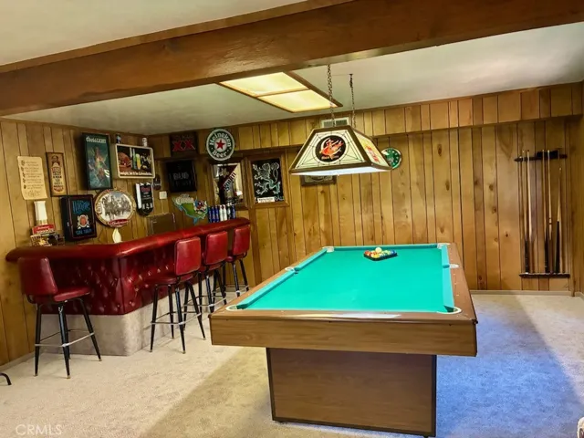 Nestled among the pines of Crestline, this charming mountain retreat provides off-street parking for up to 3 cars. Upon entering the dramatic floor to ceiling stone fireplace warms the spacious living room and its expansive windows, paneled walls and gorgeous open beam ceiling. Newer hard flooring spans the upper level. The original well-maintained kitchen cabinets further emits the cabin feel. Gain access to the walk out 7×24 balcony/deck through the sliding glass doors and enjoy a sweeping view of the woods below. The master bedroom, secondary bedroom and full bath complete the first level. A staircase leads down to the second level…the approx. 425 sq. ft. newly carpeted bonus room boasts a built-in bar, a pool table, plenty of room for seating and a wood burning stove for those cool evenings. The third bedroom and second bathroom is located on this level as well. The washer/dryer is located in the utility room with a pedestrian door to the outdoors. There is plenty of room for storage. Crestline offers an abundance of opportunities for year round outdoor activities…from relaxing at Lake Gregory enjoying all the water sports of swimming, fishing and boat rentals in the summer to skiing the slopes in Big Bear in the winter. Welcome home to your mountain retreat!!