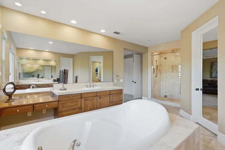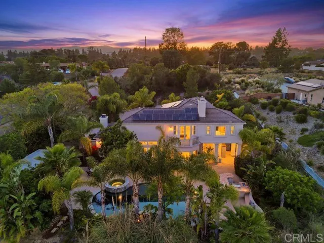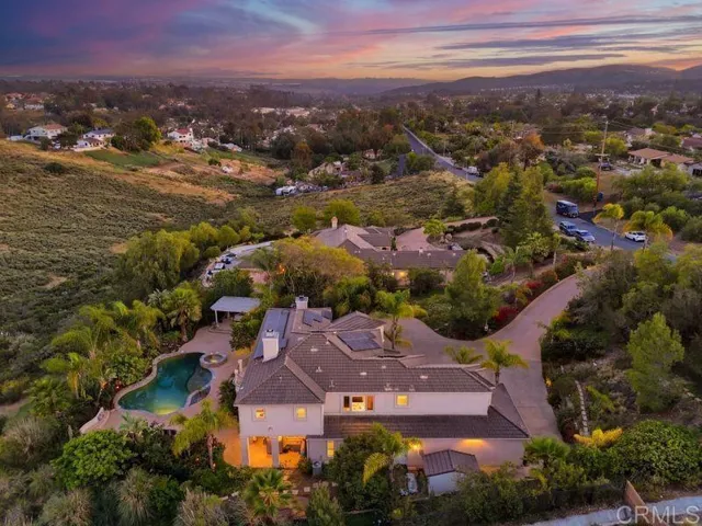 RARE OPPORTUNITY TO OWN A CUSTOM ESTATE ON OVER 2 ACRES IN THE HIGHLY DESIRABLE COMMUNITY OF POWAY. THIS 4,004 SQ FT HOME WELCOMES YOU WITH A GRAND ENTRY AND SOARING CEILINGS, FEATURING A FULL BEDROOM AND BATHROOM ON THE MAIN LEVEL, A SPACIOUS OPEN-CONCEPT FLOOR PLAN, OWNED SOLAR, AND AMPLE RV PARKING. ENJOY RESORT-STYLE LIVING WITH A SPARKLING POOL AND SPA, PERFECTLY POSITIONED TO CAPTURE SWEEPING MOUNTAIN AND CANYON VIEWS. THE EXPANSIVE AND PRIVATE GROUNDS OFFER ENDLESS POSSIBILITIES, INCLUDING SPACE FOR AN ADU OR HORSE AREA, AND ARE IDEALLY LOCATED NEAR TOP-RATED SCHOOLS AND SHOPPING. THE LUXURIOUS PRIMARY SUITE IS A TRUE RETREAT, COMPLETE WITH COZY FIREPLACE AND PRIVATE BALCONY OVERLOOKING THE SERENE CANYON. THIS 4 BEDROOM PROPERTY ALSO INCLUDES AN OFFICE, GYM AND A LOFT! A RARE BLEND OF SPACE, PRIVACY, AND LIFESTYLE-THIS IS POWAY LIVING AT ITS FINEST!