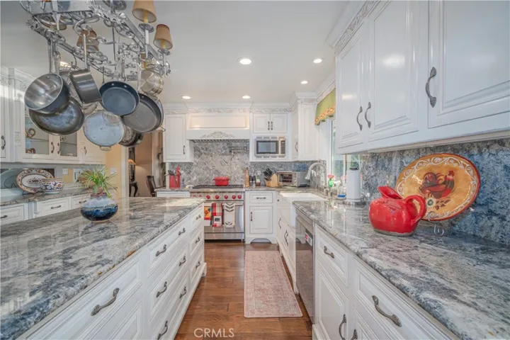 This luxury estate located in the prime & complete privacy location of “South Hills” area. The owner has thoughtfully upgraded with the top of the line materials and appliances. Large living room with stunning vaulted wood-beamed ceiling and expansive custom fireplace. Formal dining room with vaulted high ceiling and a large window that brings in the natural light. Gourmet kitchen with center island, top of the line appliances and custom cabinetry. Large family room with built in bookshelves. Custom drapes, anderson sliding doors, recessed lighting, crown moldings and hardwood flooring throughout the downstairs. Master suite with balcony to enjoy the beautiful backyard and the bathroom with soaking tub, steam shower and granite countertop. Completely private RESORT-LIKE 22,610 SF all flat backyard professionally landscaped with sparking pool/spa and large patio. This is an extremely well-maintained home. Upscale neighborhood. 3 car garage attached. Walking distance to South Hills golf course/ country club. South Hills schools and park. Showcase, Extraordinary, elegance all in this estate. Excellent school district. NO HOA fees.