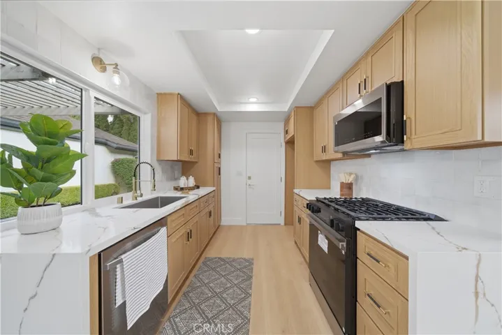 This fully renovated, sophisticated residence, nestled within the prestigious Laurelwood Community, represents a complete reimagining of modern suburban living. Extensively remodeled to blend timeless architecture with contemporary luxury, this gem showcases a meticulously curated space designed for those with discerning taste. The home’s transformation begins the moment you step into the light-drenched living room, where natural light and a floor to ceiling designer finished fireplace set the tone. The heart of the home, the chef’s kitchen, has been elevated with premium quartz countertops including quartz “waterfall” finishing at the open ends of the all-new cabinetry, recessed lighting, updated fixtures and hardware and stainless-steel appliances ensuring every meal is prepared in an environment of absolute refinement. Off of the adjacent dining room, middle open sliding doors lead out to an interior alcove which bathes multiple surrounding rooms in warm and inviting natural light. With 3 total bedrooms, including a fully renovated primary bedroom with a spa-like ensuite and great light from the central alcove, and a completely renovated guest bath, this home is fully ready for its’ next chapter. Off the kitchen is a large sliding door which leads out to an enviable private yard space which features a covered patio, a large grass area and mature planter beds. The perfect place to play or entertain in privacy and security and, together with the kitchen, allows for true indoor/outdoor living. An attached direct access two car garage with dedicated laundry hook ups completes the residence. Situated on a quiet, neighbors only tree lined street in Tustin, which is known to have an unparalleled lifestyle, residents enjoy a perfect balance of historic charm and modern convenience. Located just moments from the vibrant Old Town Tustin, high-end retail at The District, top-tier Orange County dining and great local schools. For those seeking an active lifestyle, the community offers lush parks and easy access to major commuting corridors, making it a premier hub for both work and play. This is more than a home, it is a meticulously upgraded sanctuary. Welcome Home!