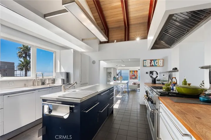 Positioned at the north end of Hermosa Avenue on a rare no-through street directly across from the sand, this striking multi-level residence captures the essence of elevated coastal living. A dramatic 30-foot entry welcomes you, while expansive skylights and thoughtfully placed windows flood the home with natural light, creating a bright and airy living experience.
