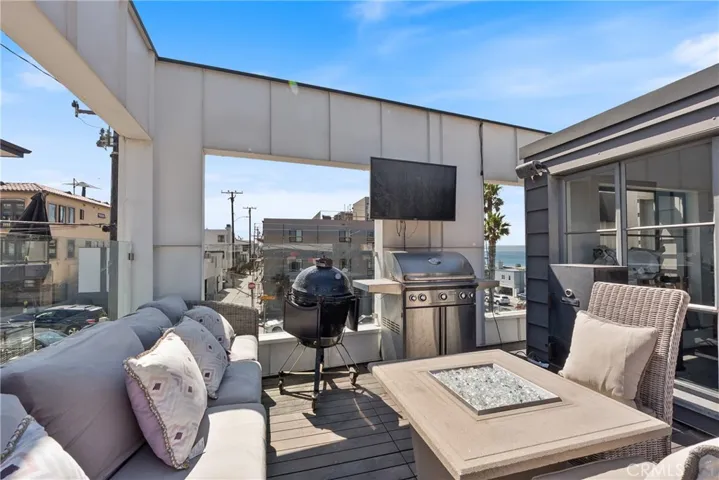 Panoramic ocean and coastline views stretch from Malibu to Palos Verdes, encompassing both the Manhattan Beach and Hermosa Beach piers. While title reflects two bedrooms, the home has been thoughtfully designed and furnished as four, offering exceptional flexibility. Each bedroom is positioned on its own level and oriented on different sides of the home, creating a unique sense of privacy ideal for families, guests, or a flexible living arrangement.