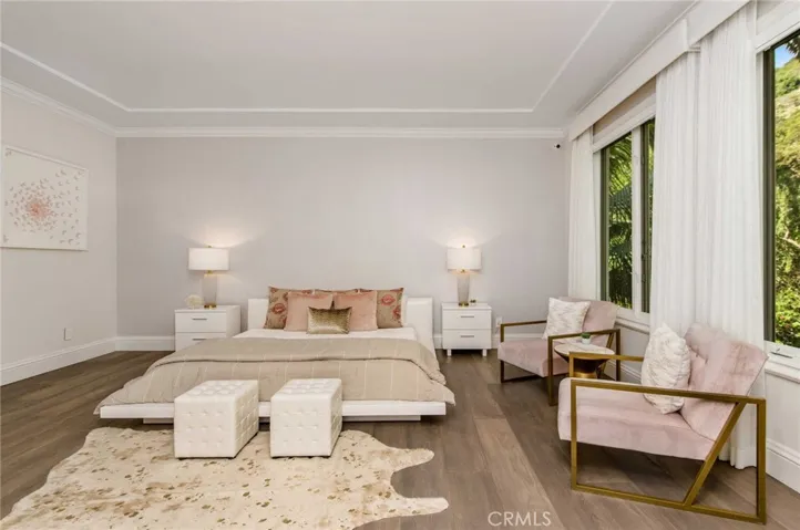 Ultra-Private Furnished Estate! Beverly Hills Cul-de-Sac! Secluded behind double gates at the end of Clear View Dr, this sanctuary delivers 5,556 sq ft of luxe interiors with 6 ensuite bedrooms + office on 31,000 sq ft resort grounds, minutes from Rodeo Drive. Grand living salon with wet bar, fireplace and drop-screen cinema joins a formal dining room and Miele chef’s kitchen; main-level office and staff suite. Upstairs, the grand master suite offers Mr Steam shower and twin boutique walk-in closet + 3 additional bedrooms. Outdoors, enjoy a heated salt-water pool & spa, half basketball court, lawns, terraces and a detached guest house ideal for gym or studio. Smart automation, camera security, electronic shades and 3-car garage complete this trophy lease—schedule your private tour today.