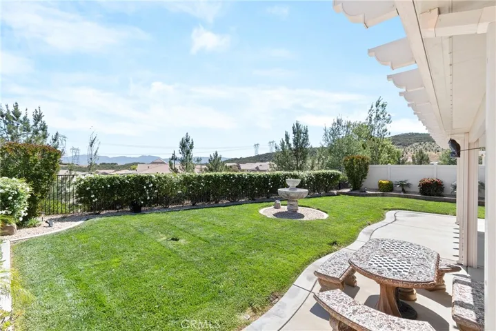 VIEW ‘SANCTUARY’ Model – 1,738 Sq Ft (2 BR 2 BA + Den/Office Great Room Concept) – Beautifully Maintained & Decorated ONE Level VIEW Home. Features & Upgrades include: Stylish Large Tile Flooring throughout the Home; Custom Fans & Lights (5 Fans); Blackout Blinds; Spacious Kitchen Pantry with Custom Glass Door; Whole House Water Softener System; Under Sink Filter; Price Includes SS Samsung Refrigerator and LG Washer & Dryer; Tankless Water Heater; Closet World Closet System; Premium Front Wrought Iron Security Door; Yards with Low Maintenance Drought Resistant Features (Artificial Turf); The Serene, Picturesque Backyard offers: Privacy, Beautiful Views; A Wrap Around Patio Cover; Cement Picnic Table with Umbrella Insert; Practically Maintenance Free yard Areas and a Large Fountain with Lights. The Double Garage has Storage and Epoxy Flooring with a 8/2025 Garage Door & Motor and Upgraded Insulation. There’s a Low Mello Roos with this Beauty! Price includes Mounted TV’s (70″ + 65″ + 32″) Furniture Available outside of Escrow …… FOUR SEASONS goes beyond just a place to live – It’s a vibrant community designed to keep you Active & Engaged, offering: THREE Club Houses; A Restaurant; Beauty Salon; Massage Parlor and Facial Salon; THREE Swimming Pools & Spa Areas with one Indoor Heated Pool; Movie Theatre; Billiards, 3 FITNESS CENTERS with state-of-the-art equipment, BBQ & Picnic Areas, Tennis Courts; PICKLE BALL COURTS, Paddle Tennis, Shuffleboard, Horseshoe and Putting Green, 6+ MILES of Nature/Hiking Trails; DOG PARK, and So Many Wonderful Activities & Clubs to meet new Friends and be as Active as you choose. FOUR SEASONS is approximately 30 miles from Palm Springs, at a higher elevation for a cooler climate to experience all of the four Seasons; Close to Shopping Centers, (including the World Famous Cabazon Outlet) Restaurants & Casinos, MEDICAL CENTERS/FACILITIES (Literally across the street from Loma Linda & Beaver Medical) – This Picturesque Community is surrounded by rich ranch lands with a Scenic backdrop of 2 Mountain ranges.