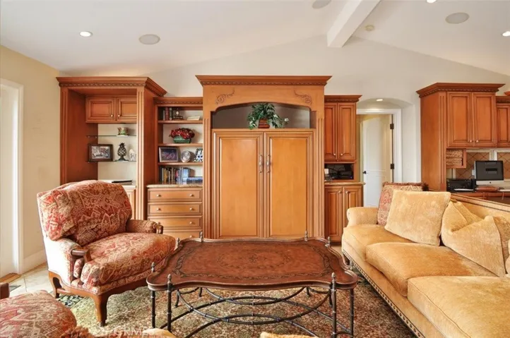 Set on one of the area’s most coveted streets, this single-level residence unfolds across 2,849 square feet of light-filled living space where travertine and hardwood floors, vaulted ceilings, and thoughtful custom details create a warm yet elevated atmosphere. The floor plan flows beautifully from the formal living and dining rooms into an expansive great room with breakfast area, custom built-ins, and a gourmet kitchen with center island—perfect for everything from casual mornings to lively dinner parties.