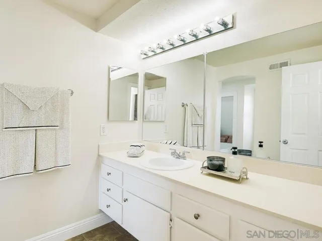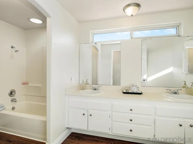 Welcome to this well cared for home, offering an opportunity to personalize and make it your own. Offering 5 bedrooms and 3 bathrooms, including a bedroom and full bath on the main level, ideal for guests or multigenerational living. The spacious primary suite features a walk-in closet and a relaxing soaking tub. Situated on a desirable corner lot, the property features approximately 2,300 sq. ft. of stamped concrete in the front and backyard, completed in 2020, along with stone retaining walls and paver steps, creating inviting outdoor spaces to enjoy. The yard is further enhanced by a variety of mature fruit and flowering trees, including guava, cherimoya, plumeria, and Meyer lemon. The home offers 2,085 sq ft of living space. Thoughtful updates include a fully paid 9 panel SolarTech solar system and roof installed in 2019, Bosch HVAC system with new ducting installed in 2026, Chamberlain smart garage door opener with updated rollers installed in 2025, laminate flooring installed in 2024, and recent improvements to the water heater, pressure pump, disposal, and copper plumbing installed in 2026. Centrally located in the Windmill neighborhood, a name originally given at the time of development, near schools, shopping, dining, farmers market, Old Poway Park, Poway Lake, and the Poway Center for the Performing Arts. A wonderful opportunity to enjoy comfort, convenience, and community in Poway. Come and experience a lifestyle worth living in a community where we call home.