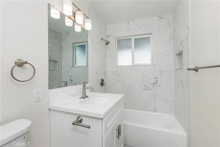 Newly renovated 2-bedroom, 1-bath home in Bellflower, conveniently located near the 91 freeway for easy commuting. This upgraded home features brand-new shaker cabinets, quartz countertops, and durable wood laminate flooring throughout with carpet in the bedrooms. The kitchen includes all new stainless steel appliances, including a electric range, microwave and refrigerator. Additional features include a one-car attached garage, storage shed, and a spacious private backyard. Washer and dryer hookups are located outside. Gardener service is included in the rent. Unfortunately NO PETS- Don’t miss this beautifully updated home in a great location—schedule a viewing today!