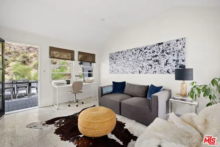 AVAILABLE NOW In an exclusive gated enclave in the Los Feliz Oaks – this is the perfect pied a terre. Fully Furnished with a style that combines classic, contemporary and casual bohemian sensibility. Just Charming! This two story Traditional style home has hardwood floors throughout; an open floorplan of living & dining and superbly appointed kitchen allow for great entertaining and the fireplace in the living can be seen throughout. On the downstairs is a full bath plus a bedroom and den that open to the back patio. The upper floor has two bedrooms and a bathroom. All rooms are light filled and look out on trees and greenery . The outdoor entertaining areas are wonderful with a lower level patio and stairs leading to a meditation spot with views over the trees and canyon. Indoor laundry area and Secure two car garage complete a really wonderful home