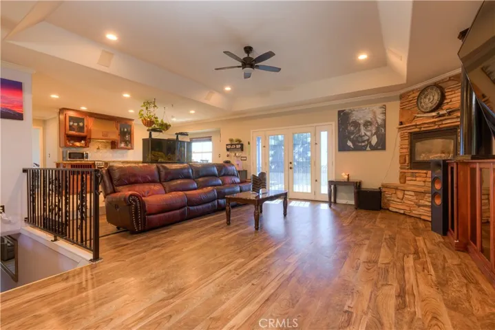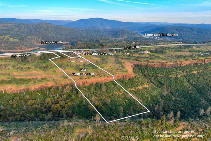 Incredible once in a lifetime estate property!! The property consists of two parcels, one is 1.9 acres with custom built home offering over 3,000 sqft with massive amount of rear decking and front decking as well. Split bedroom floor plan with primary suite to right rear of home with walk in closet, spacious bedroom and nice size bathroom. The other bedrooms and office room opposite end of the home, one is junior suite as well with additional bath servicing other bedrooms. Solid surface flooring in main areas of home with carpet in bedrooms. Large open kitchen is part of the center piece to the home with granite counters, stainless appliances, breakfast bar and dinning area over looking rear and sunsets. The center of the home is grand room adorned with columns and rock fireplace plus glass doors to rear deck off the home. There has been new stairway added with custom iron railing to carry you down to the huge game room with LVP floors, Huge flat screen TV and additional TV’s for game time, professional air hockey, arcade game, and tons of room for entertaining. Huge rear deck offering sitting areas, BBQ area and in deck spa to enjoy not only the most amazing sunsets and stars galore at night. Above ground large pool with decking all around and over 14 palm trees, plus nice natural pond. Tons of landscaping done with abundant amount of outdoor lighting, massive amount of wrought iron fencing with electric gated entry as well. There is a second home on the property for passive income or extended family as well. Did I mention views and sunsets!! Holy cow the most amazing sunsets can be had here with views down Dry Creek Canyon all the way to the Sutter Buttes!! This total property is nearly 16 acres in two parcels and two separate gated entries with elec key pads, the additional 13+ acres has been leveled and cleared opening the door to many possibilities form ag to animals to storage or ?? All located two minutes from Lime Saddle Marina and Lake Oroville for the boat and water recreation enthusiasts!! Far to much to go on about, must see in person!!