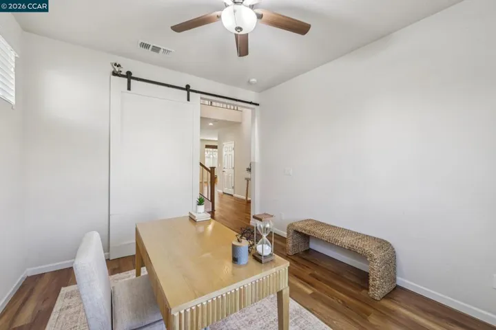 Charming east-facing two-story home in desirable Emerson Ranch, featuring 4 bedrooms, 2.5 baths, and a spacious, functional layout. Upstairs offers a large primary suite with a generous bathroom and walk-in closet, a convenient laundry room, and a huge loft—perfect for a media room, office, or play space. The open-concept kitchen flows seamlessly into the expansive family/great room, creating an ideal setting for everyday living and entertaining. Enjoy a low-maintenance, beautifully landscaped backyard with a covered patio—perfect for relaxing or hosting on warm summer evenings. Additional highlights include a spacious 2-car garage and a prime location close to parks, top-rated schools, and convenient commute access.