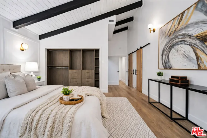 Situated in a quiet, tree-lined pocket of Valley Village, this exceptional contemporary residence offers nearly 5,000 square feet of thoughtfully designed living space on a generous 9,450 square foot lot. The home features seven bedrooms and six bathrooms, including two spacious primary suites, providing flexibility and privacy for comfortable living. Soaring ceilings and a bright open floor plan create a striking first impression, complemented by custom LED fireplaces and expansive living and family spaces ideal for both everyday living and entertaining. The chef’s kitchen is the centerpiece of the home, showcasing a porcelain waterfall island, custom cabinetry, designer porcelain countertops and backsplash, and high-end appliances.The primary suite offers a private balcony overlooking the backyard, dual walk-in closets, and a spa-inspired bathroom with dual vanities, a soaking tub, and a large glass shower. Several additional bedrooms include ensuite baths, adding comfort and convenience for family and guests.The backyard is designed for true California living, featuring a custom pool and spa, outdoor barbecue area, and lush landscaping that creates a private, resort-style setting. Located near top-rated schools, shopping, dining, and the conveniences of Burbank Boulevard, this Valley Village home offers the perfect blend of luxury, space, and modern design.