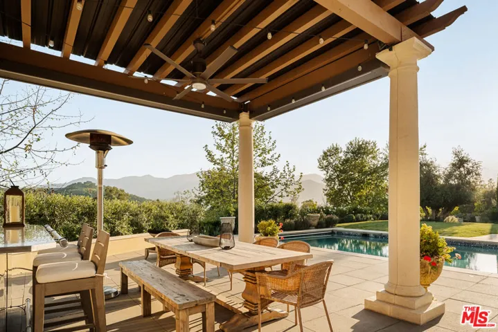 Set within the gates of Malibu Valley Estates, amidst the serenity and natural beauty of the Santa Monica Mountains, this newer-construction Italian-inspired estate offers breathtaking panoramic mountain and canyon views, exceptional privacy, and a level of craftsmanship rarely seen. Built by one of Southern California’s most meticulous builders and tucked behind a second set of gates, the residence marries high-quality finishes, state-of-the-art technology, and modern innovation with timeless architecture and style. Spanning over 7,000 square feet on more than 2 acres, the estate features six beautifully appointed en-suite bedrooms and a grand, open floor plan designed for both everyday living and elevated entertaining. Soaring 12 to 20-foot ceilings, imported finishes, and walls of glass create a light-filled interior that seamlessly frames the surrounding natural landscape. A dramatic foyer with handcrafted wrought iron detailing introduces expansive entertaining spaces that flow effortlessly from one to the next. The chef’s kitchen is outfitted with professional-grade La Cornue and Gaggenau appliances, marble countertops, and an oversized island with breakfast bardesigned for both casual dining and refined gatherings. A 20-foot retractable wall of glass opens to the loggia, revealing a resort-style outdoor setting complete with a pool and spa, manicured gardens and lawns, tranquil fountains, and mature landscaping, evoking the timeless elegance of a Mediterranean villa. “The Italianate” is a true expression of luxury living, offering a four-car garage and expansive motor court ideal for collectors, along with the latest in smart-home technology from Crestron and enough solar storage capability to power the home off-grid. Ideally positioned just minutes from both the Pacific Coast Highway and the US-101, the property offers a rare balance of tranquility, accessibility, and elevated living. Residents enjoy close proximity to high-end grocers including Erewhon and Bristol Farms, as well as some of the best dining, shopping, hiking, biking, horseback-riding trails, and lifestyle destinations Calabasas and Malibu have to offer.
