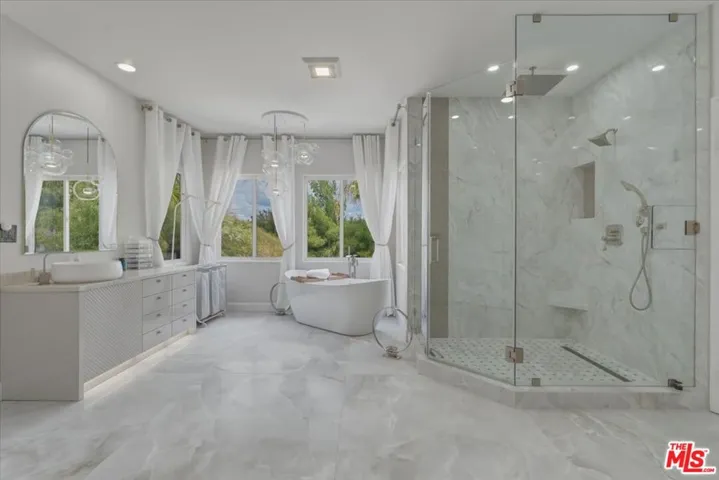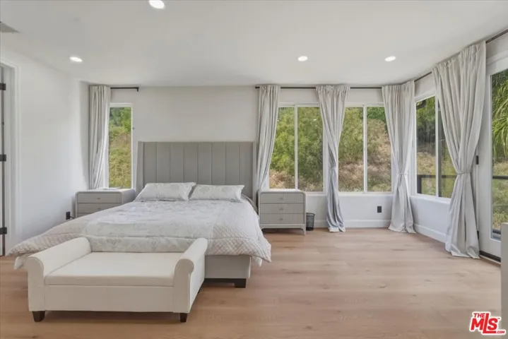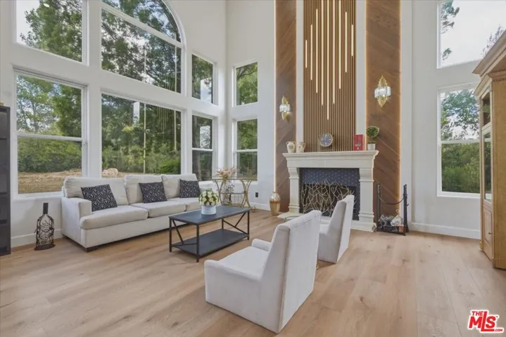 Set on over one acre in a private and peaceful pocket of Agoura Hills, this beautifully reimagined residence offers 6 bedrooms, 5 bathrooms, and approximately 3,908 square feet of thoughtfully upgraded living space. The home blends modern design with natural surroundings, creating a refined yet comfortable atmosphere throughout. A grand entry introduces soaring 18-foot ceilings and dramatic floor-to-ceiling windows that flood the interior with natural light while capturing serene outdoor views. The living room is both warm and sophisticated, centered around a fireplace and designed for both everyday living and entertaining. The fully remodeled kitchen showcases a striking combination of custom cabinetry, a spacious center island, premium appliances, and an expanded breakfast area. Clean lines and elevated finishes create a space that is both functional and visually impactful. Upstairs, the primary suite offers a private retreat with its own balcony, and a spa-inspired bathroom featuring a freestanding soaking tub, oversized glass shower, and a custom walk-in closet. Additional bedrooms are well-sized, and a versatile office or optional bedroom provides flexibility for a variety of uses. Bathrooms throughout the home have been tastefully updated with high-end materials and modern finishes. Wide-plank flooring, designer lighting, and curated details throughout enhance the overall aesthetic, creating a cohesive and elevated living experience. The expansive lot provides a sense of privacy and space, while still offering convenient access to nearby hiking and riding trails, shopping, dining, and major freeways. Located within the highly regarded Las Virgenes School District, known for its strong academic performance, and in proximity to well-known private schools, this home combines design, functionality, and a desirable location. A rare offering that delivers both quality and setting in one of Agoura Hills’ most sought-after areas.