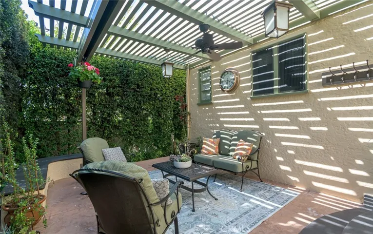 Spanish Revival Architecture is having a major moment and this home showcases all of the signature design elements that make this style so popular, features like arched doorways and a large picture window, dark wood ceiling beams, wood-framed French windows, wrought-iron railings and fixtures, a handsome fireplace and hearth trimmed in Spanish tiles, intricate carved wood detailing at the mantle and decorative lintels, and a delightful little niche in the hallway. From the moment you enter through the wrought iron gate, you’re welcomed by a large, vibrant courtyard designed for entertaining or relaxing beside the peaceful fountain and outdoor fireplace. This blend of classic architecture from the 1920s has all of today’s modern conveniences and luxury as well. The well-designed kitchen is outfitted with top-tier Wolf appliances, a Shaws handcrafted sink and custom Wood Mode easy-clean cabinets. (You’ll have to look closely to find the seamlessly integrated refrigerator and dishwasher.) The charming breakfast nook with its built-in seating is perfect for morning coffee or a cozy casual dining area. This nook also offers a wall of cabinets and a lighted, glass display case. The adjacent laundry room provides additional cabinet space. One thing is for sure: you won’t lack for cabinet space here! Polished peg and groove wood floors in the living room and formal dining room add to the richness and beauty of this home. Climb the wood staircase with its wrought-iron railing and experience the beauty of the large stained glass window above the landing. Upstairs, the spacious primary bedroom offers French doors to a private balcony overlooking the courtyard with pleasant views of the Verdugo Mountains. The adjacent retreat is ideal for a home office or a quiet space for reading. The primary bath has tile floors and wainscoting, a pedestal sink, a separate tub and shower and a banco with flanking cabinets. Three of the four bedrooms are on the upper level and two of the bedrooms have vanities (one up and one down). Whether it’s in the expansive front courtyard or the more intimate back-yard patio with a waterfall spa and built-in BBQ, this home is designed for entertaining. Meticulously maintained, this is a golden opportunity to own a home that provides historic charm while delivering modern livability.