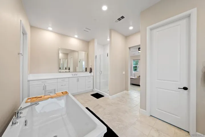 Exceptional single-story smart home on 1.5 private, view-filled acres, fully fenced and located on an elevated cul-de-sac with only two neighboring residences. This 2020 Lennar home features nearly $300,000 in resort-style landscaping, a saltwater pool and spa, and a dramatic fire-pit lounge with seating for 30—ideal for entertaining. Three-car garage with total parking for seven vehicles. Paid solar with Tesla batteries powers the estate and heats the pool/spa year-round. Elevated for sweeping vistas, privacy, and refined modern living. See supplement. Crafted for those who value privacy, luxury, and effortless indoor–outdoor living, this stunning single-story residence sits on beautifully landscaped grounds designed for true resort-style enjoyment. A custom saltwater pool and spa anchor the backyard, complemented by a dramatic fire pit with built-in seating for 30, a shaded pergola lounge, and a designer mobile outdoor kitchen for seamless al fresco dining. A gated side access with steps adds convenience and flow. Inside, soaring ceilings and natural light create an inviting, modern atmosphere. The great room features disappearing glass walls that blend into a stylish California room with fireplace, outdoor TV, and motorized shades—mirrored by automated window treatments in the living area. The chef’s kitchen impresses with high-end stainless appliances, a large quartz island, custom cabinetry, and both butler’s and walk-in pantries. The dining area frames picturesque views through floor-to-ceiling windows. Four ensuite bedrooms plus a flexible bonus room offer space for an office, studio, gym, or media room. The primary suite includes elegant molding, a spa-like bath with freestanding tub, dual vanities, a frameless shower, and a generous walk-in closet. California Closet built-ins enhance the primary suite, living room, and garage. Smart-home upgrades include voice-controlled thermostat, tankless water heater, Ring doorbell, paid solar (also heating the pool), Tesla batteries, EV pre-wire, generator, self-cleaning pool robots, LED lighting, dual A/C zones, alarm system, fire sprinklers, low-energy windows, and ceiling fans in all rooms. Yard is pre-wired for additional gas/electric and includes a turf pet area. The solar/battery system produces enough energy to power the home, heat the pool, and generate credits year-round. Harmony Grove Village amenities include a resort pool, spa, clubhouse, grilling areas, multiple parks, dog park, and over two miles of scenic trails for hiking, biking, and horseback riding.