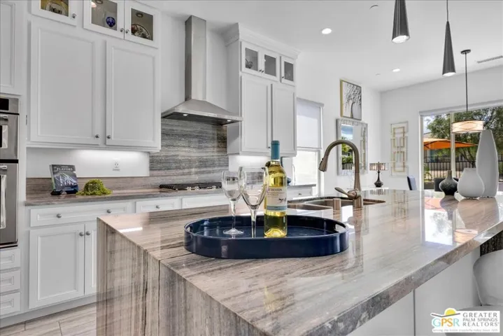 Presenting a fresh and vibrant opportunity for your next journey in life . This highly upgraded and stunning Del Webb beauty brings luxury and understated elegance to desert living. A thoughtfully designed residence showcases an open-concept great room floor plan ideal for both everyday comfort and effortless entertaining. This home has been extensively upgraded with a premium built-in KitchenAid appliance package, elevating the chef’s kitchen to a true focal point. Stunning quartz waterfall countertops anchor the oversized island, complemented by the highest level cabinetry upgrade offered by PulteGroup, delivering a refined, contemporary finish throughout. Located within the guard-gated community of Del Webb Rancho Mirage, residents enjoy access to a world-class clubhouse, resort-style pool and spa, fitness center, tennis and pickleball courts and more. A rare opportunity to own one of the community’s most sought-after floorplans, enhanced with top-tier builder upgrades, designer finishes, and a backyard that brings outdoor entertaining to resort level. The spacious den offers a 3rd bedroom option .