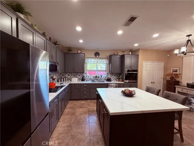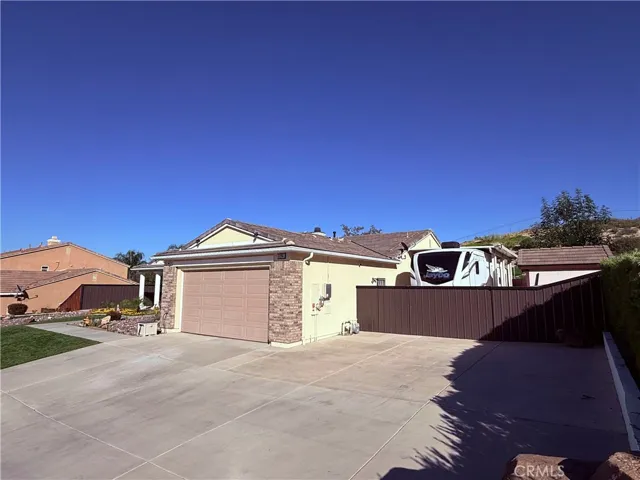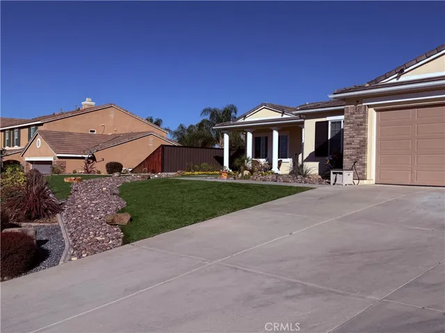 Welcome to Woodmoor Estate! This beautifully maintained pool home has been meticulously cared for and is truly move-in ready. Offering 3 bedrooms, 2 bathrooms, and an oversized 3-car tandem garage, this property combines comfort, style, and functionality. The thoughtfully designed open floor plan features a formal living room and dining room, perfect for both everyday living and entertaining. The spacious, newly remodeled kitchen showcases solid wood cabinetry, quartz countertops, a large island, and a dining area. Just off the kitchen, the inviting family room offers a custom-encased fireplace and plenty of room to gather. The primary suite features backyard views, private access to the backyard, and a large walk-in closet. The beautifully upgraded primary bathroom includes a custom walk-in shower, marble and decorative tile finishes, and dual vanities. Two additional spacious bedrooms and a full secondary bathroom with matching upgrades and dual vanities complete the interior. Additional highlights include laminate flooring, 20×20 tile, neutral custom paint, recessed lighting with dimmer switches, and an oversized laundry room with sink and abundant cabinetry. Step outside to your private backyard retreat, complete with a custom rock pool and spa, concrete hardscape, a full-length patio with Alumawood patio cover, artificial turf, drought-tolerant landscaping, manicured plants, peach, apricot, pomegranate, lemon trees and two stick-built storage work sheds. The property also offers covered RV parking with an extended driveway. Situated on a quiet street with amazing hill views and low HOA, this home is conveniently located near shopping, restaurants, and freeway access. Don’t miss this rare opportunity to own a truly one-of-a-kind home.