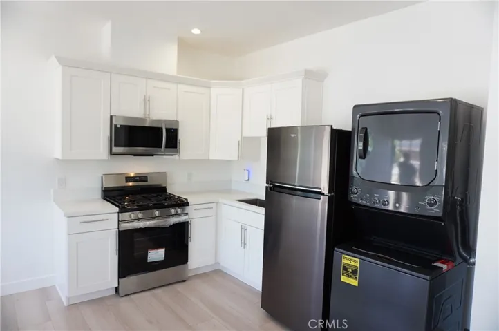 Studio ADU in the heart of Northridge! 400 sq. ft. of living space with an open floor plan featuring laminate floor, recessed lights throughout, mini-split AC/heater unit, and a tankless water heater. The kitchen includes white cabinets, quartz countertops, and brand-new appliances, including a gas stove, microwave, refrigerator, washer, and dryer. The bathroom is beautifully designed with tiled floors and a shower with a glass door. This ADU is situated at the front of the property with a spacious, fenced, private front yard with very low maintenance. Conveniently located near CSUN, shopping centers, Target, and major freeways, this ADU offers easy access to everything Northridge has to offer. Sorry, no pets. A must-see!