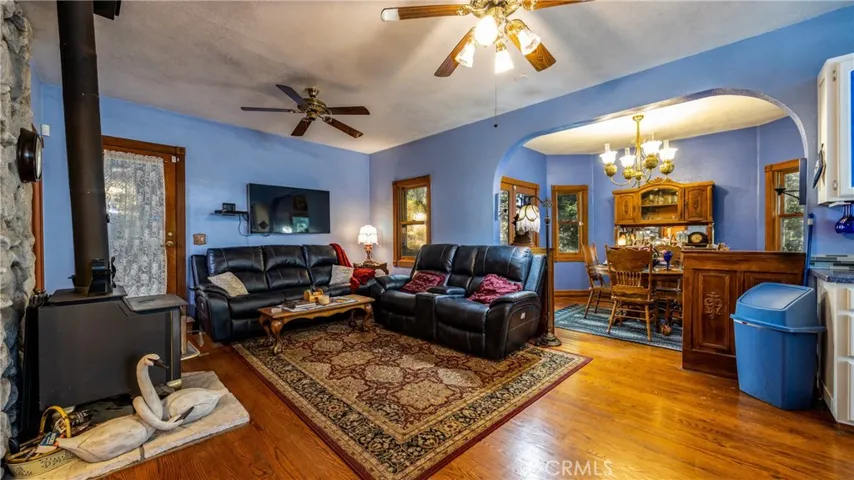 **Victorian Elegance Among the Treetops!** This large custom Victorian home offers 4 bedrooms, 2.5 baths, and timeless craftsmanship throughout. Step into a grand entry featuring rich wood flooring, an open staircase, and handcrafted wood banisters that set the tone for the home’s warm, inviting style. The main level boasts an open-concept layout connecting the living, kitchen, and dining areas—all with wood floors. The chef’s kitchen is highlighted by quartz countertops, a Wolf range, high ceilings, and a central island with inside cabinet appliance lift. The living room includes a ceiling fan, energy-efficient dual-pane wood-framed windows, a cozy wood-burning stove, and direct access to a covered patio—also accessible from the dining room through elegant double doors.
