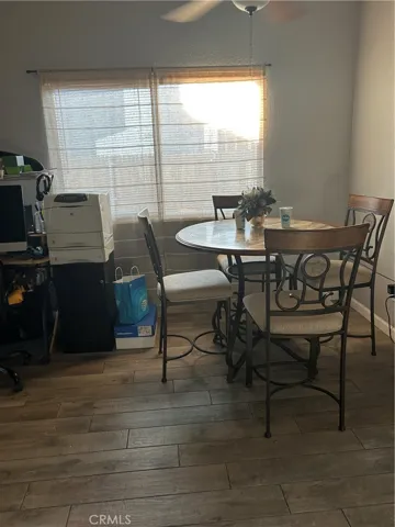 LARGE LOT SFR, TURN-KEY, SOLAR EV with Sooo Much Potential for ADU Rental-Income, or Day Care Business, and More!!! Starter Home, or Downsizing, Running a Business? Located in a quiet neighborhood: Now you can be the Proud Owner of this Beautiful Home with Newer Roof! Add your personal design & style. Front Double-Door entry to the small foyer leading to a spacious living room with Fireplace, and Dining Room. It boasts 2 large carpeted bedrooms & large closets. The primary bedroom has a walk-in closet, and Sliding Doors that exit to rear patio at X-Large Backyard to Add a Jacuzzi/Pool. The full bathroom has a bathtub to relax and rejuvenate. The Kitchen has nice gray cabinets, with complementary backsplash, and plenty of counter space, it also has a built-in nook where cushions will provide extra seating. Just add a small table for breakfast, coffee, tea, or as extra workspace. The Living Room also has Sliding doors leading to a covered cement patio where you can add a complete BBQ dining/bar/entertaining setting. Lots of sunlight streams through the windows, with wood-like shades, and wood laminate throughout. Separate Laundry room that exits to 2-car garage. Newer double-strapped water heater. Some fruit trees (pomegranates, lemon, kumquat). Plenty of room to add 1+ rooms, and still add that spa/pool. Great for anyone running a small business or just work remotely. This home is awaiting your very own creative extra touch.