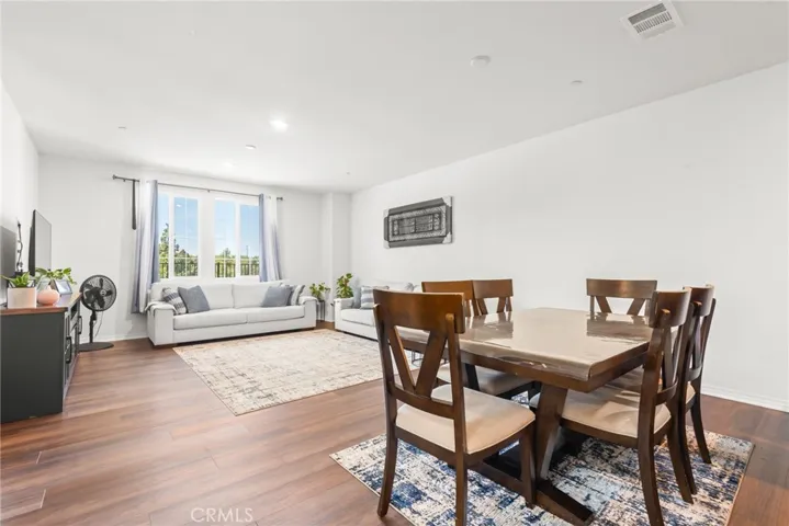 Situated on a desirable corner unit, the home features a 2-car garage, paid-off solar panels, and a private courtyard entry that adds charm and outdoor living space. Inside, the open floor plan is filled with natural light and enhanced by upgraded flooring, recessed lighting, and a modern kitchen with stainless steel appliances, a large island peninsula, pantry and ample storage.