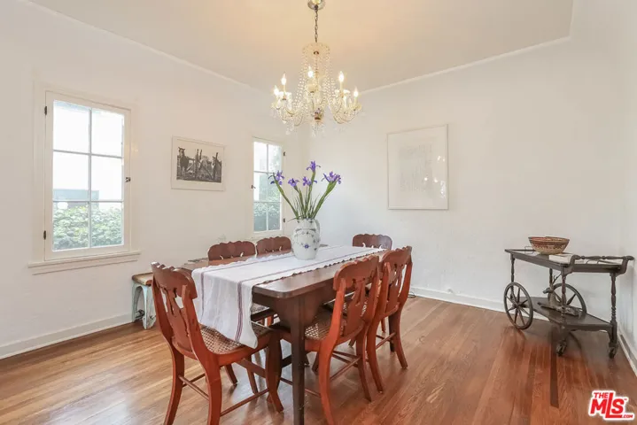 The coveted ground floor unit of this beautiful Spanish duplex is now available for lease! Located on the peaceful, hilly residential section of Highland Ave. between Olympic and San Vicente called the Longwood Highlands. This approx. 1350 sq ft home with hardwood floors, charming archways and a decorative living room fireplace has two bedrooms, one remodeled bath, and a large formal dining room. Large windows invite the sunshine in. The remodeled eat-in kitchen has stainless appliances, plenty of counter and cabinet space and a built-in wine rack. The breakfast area also makes a great office space! Built-in cabinets and large closets in the bedrooms and hallway provide ample storage, and there is a private laundry room with washer and dryer just for your use. Perhaps the best part of living at 1220 Highland is the backyard filled with greenery. The large private-to-you deck allows you to mellow out surrounded by an herb, citrus and rose garden along with the green lawn and specimen trees beyond. A one car garage is designated for your storage use. Make this beautiful character and nature-filled home yours now!