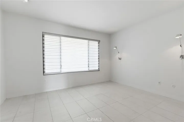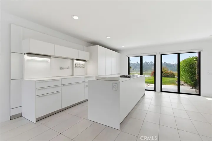 The gourmet kitchen is a true showpiece; appointed with custom-designed imported cabinetry, marble countertop, generous storage, a custom-built refrigerator and freezer and a premium JENN-AIR range in the center of kitchen island. Custom white ceramic flooring flows seamlessly throughout both levels, creating a clean, sophisticated backdrop that enhances the home’s refined aesthetic. Additional bespoke details include built-in custom closets in both bedrooms, custom glass bathroom doors, custom opaque glass bedroom doors, wall-mounted Bang & Olufsen flat-screen with mechanized Apple TVs in each bedroom, a fabulous deep-soaking tub with waterfall faucet and a wall-mounted towel warmer in the primary bath. Skylights provide natural lighting both inside the home and patio.