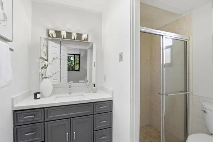 The family room opens to the serene backyard through a sliding door. Enjoy the best of California living in the beautifully landscaped backyard, complete with large pergola with fire pit & Zen water fountain, ideal for outdoor gatherings and relaxation. Within walking distance of Sedgwick Elementary/Hyde Middle/Cupertino High School, quick access to Cupertino Main Streets vibrant restaurants, Apple Park, Nvidia, Creekside Park,Google , Netflix and other Silicon Valley tech campuses.Centrally located near shopping, dining, commute routes and in the heart of the Silicon Valley. Upgrades that have already been done include updated with Energy system( Solar PV, 2 Tesla Power walls backup the Whole-house, owned outright( no financing transfer required). Newer foam roof(~6 years), newer sidings with R13 insolation. Tesla charger in carport, new laminate floors through-out. Information deemed reliable but is not guaranteed and should be independently verified.)