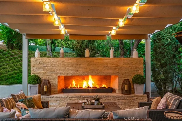 Welcome home to this exceptionally private estate nestled on a quiet cul-de-sac within the prestigious guard-gated community of Coto de Caza. Set on an over 22,000 square foot lot, this beautifully updated 4-bedroom, 3-bathroom home with a spacious loft offers the perfect blend of luxury, comfort, and resort-style living. From the moment you arrive, the property evokes timeless Tuscan charm, with stately mature Italian cypress trees, pebble gravel walkways, and perfectly manicured hedges creating a warm, Mediterranean-inspired landscape that feels both elegant and inviting. Step inside to discover fresh interior and exterior paint, stunning refinished European oak floors, three separate interior fireplaces, and a light-filled floor plan designed for modern living. A breathtaking Murano glass chandelier makes a grand statement in the foyer, setting the tone for the sophistication found throughout. The primary owner’s suite is a sanctuary, complete with a retreat and a double-sided fireplace shared with the spa-like bathroom and an expansive, fully built-out closet. All upstairs bedrooms feature brand-new carpet, while the chef’s kitchen showcases resurfaced marble countertops for a clean, elevated finish, along with a Wolf range and Sub-Zero refrigerator. The upgraded laundry room blends style and function, including a Scotsman nugget ice machine, and the versatile loft offers the perfect space for a home office, playroom, lounge area, or fifth bedroom. Outdoors, the expansive backyard is truly an entertainer’s dream, complete with a sparkling saltwater pool and spa, a beautiful oversized outdoor fireplace, a private orchard, and a low-maintenance turfed side yard featuring a playground, with plenty of room to add an ADU. The lush landscaping is filled with agaves, exotic greenery, and an abundance of fruit trees enhancing the home’s Tuscan ambiance. Brand-new outdoor awnings and a pergola provide shade and comfort, creating an ideal space for relaxing or hosting gatherings year-round, both indoors and out. Located in one of Orange County’s most sought-after gated communities, this home offers the ultimate privacy, beauty, and an exceptional lifestyle.