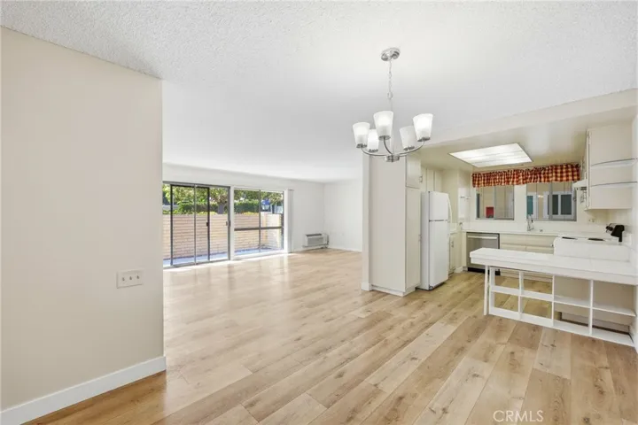 Upon entry, you’re welcomed into a spacious living room filled with natural light, highlighted by a large sliding glass door that opens to your own private patio—perfect for relaxing or enjoying the outdoors. The kitchen is fully equipped with all appliances, including a refrigerator, new garbage disposal, and an in-unit washer and dryer for added convenience.