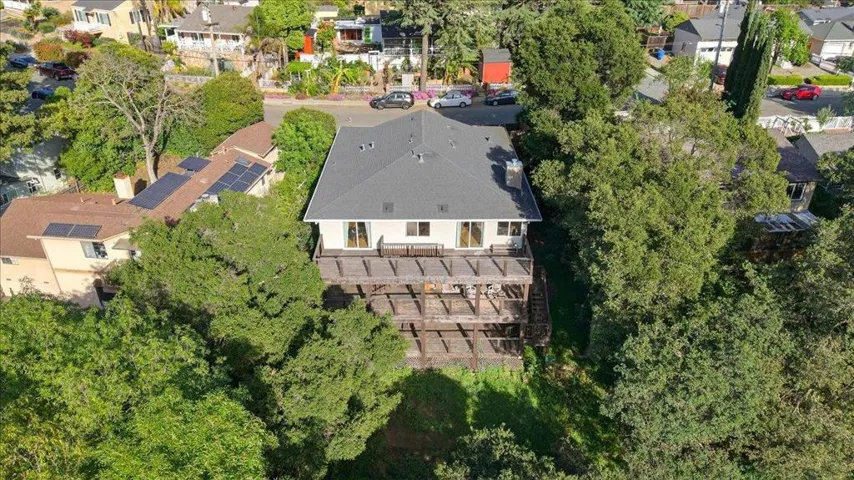 Contemporary three-story home in Fremont’s Canyon Heights neighborhood, perched in the Niles hills with sweeping views of the surrounding hillsides and tree canopy. Understated street presence gives way to a sophisticated interior that belies the scale and quality within. Fully reimagined in 2017, the open-concept main level features wide plank hardwood floors and walls of windows that bring the outdoors in from multiple exposures. The open chef’s kitchen is anchored by a large center island with bar seating, quartz countertops, white shaker cabinets, stainless steel appliances, stone backsplash, and pendant lighting. A fireplace anchors the main living area. The primary suite is generously scaled with dual vanities. A finished lower level of approximately 800 square feet, reflected in county records, provides flexible space for a media room, home gym, or guest accommodations. Across multiple levels, 1,360 square feet of decks step down the hillside and frame unobstructed views of the canyon and hills. Roof and HVAC both replaced in 2017. Minutes from Niles Canyon Road and Alameda Creek Regional Trail. Downtown Niles is walkable with a Saturday farmers market, antique shops, and local dining. Buyers to verify school enrollment eligibility with Fremont Unified.