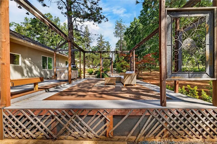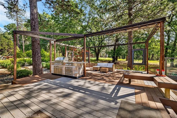 Additional highlights include two whole house fans, pre-plumbing for a water softener, and a fully customized garage with an oversized RV bay designed to accommodate the most discerning enthusiast. Outdoors, an entertainer’s paradise awaits: a fully equipped outdoor kitchen and expansive patio provide the perfect backdrop for gatherings or quiet reflection.