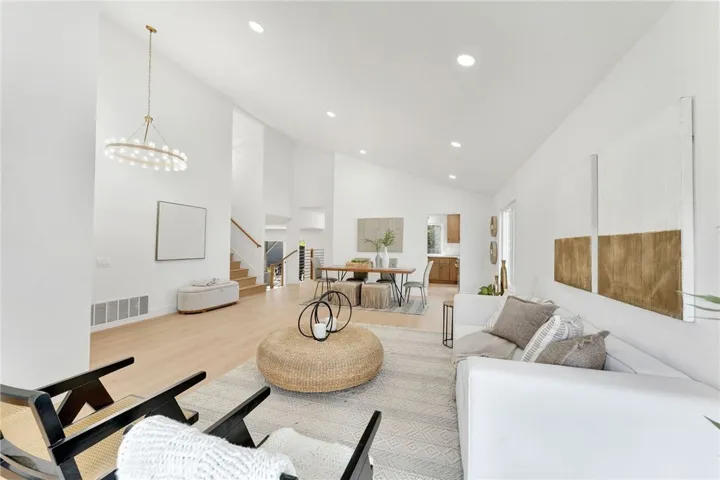 Remodeled 4-bedroom, 3-bath home in Lake Forest featuring an open-concept layout, vaulted ceilings, and abundant natural light. Updated kitchen with quartz counters and custom cabinetry opens to spacious living areas with a fireplace and built-in dry bar. Stylishly upgraded bathrooms, including a dual vanity primary suite. Private backyard and close to parks, schools, and shopping.