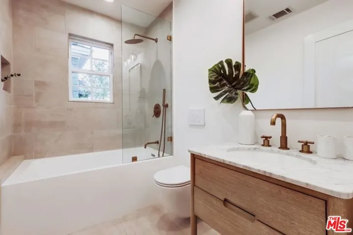 Meticulously renovated, this Cheviot Hills residence seamlessly blends modern luxury with everyday comfort. A thoughtfully designed open floor plan creates an airy sense of space, effortlessly connecting the living, dining, and entertaining areas for a natural, flowing layout. At the heart of the home, the chef’s kitchen stands out with high-end appliances, sleek countertops, and a generous center island perfect for both gourmet cooking and casual gatherings. The home features a reverse floor plan that maximizes natural light and views from the upper level, while the lower level provides convenient access to the bedrooms and private living spaces. With five spacious bedrooms, a versatile den, and five designer bathrooms, the home offers exceptional flexibility for family living, guests, or work-from-home needs. The main suite serves as a true sanctuary, complete with dual walk-in closets and a spa-inspired bathroom featuring a soaking tub, heated floors, and premium finishes. Outside, beautifully landscaped grounds extend the living space with private, tranquil areas ideal for relaxing or entertaining. Located in the prestigious Cheviot Hills neighborhood with access to top-ranked Overland Avenue Elementary, this exceptional property offers the perfect blend of convenience, charm, and upscale living.