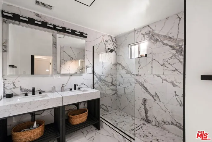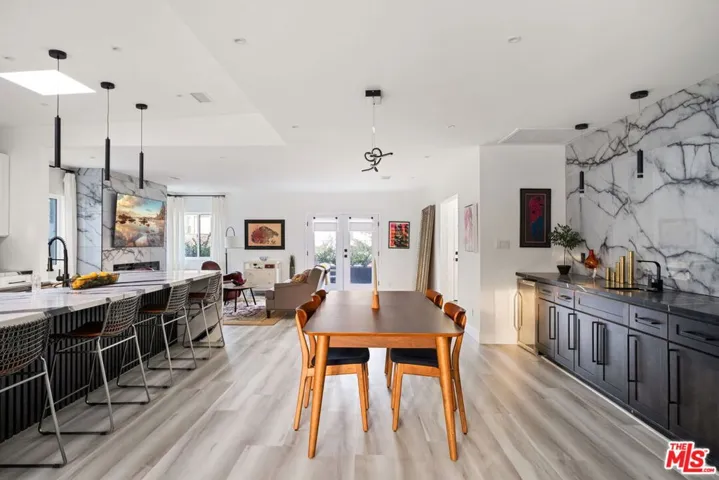 Welcome to an extraordinary modern sanctuary that defines luxury and sophistication. The curb appeal of this home captures attention as a sleek, elevated frameless glass patio greets you, complemented by a refined Santa Barbara smooth stucco finish. As you enter this contemporary residence, you are greeted with an open-concept design that effortlessly blends style and functionality, which is ideal for both entertaining and family living. Inside, the heart of the home is the designer kitchen, with a spacious 48-inch wide 8-burner stove, a 5-foot wide fridge, and a stunning 12-foot quartz island with a waterfall edge. Thoughtful features like a motion-sensor exhaust fan, built-in microwave, soft-closing drawers, and ambient LED lighting add a touch of modern innovation. Adjacent to the kitchen, a large pantry offers plenty of storage, including dedicated wine storage and additional counter space. The open flow continues into the living room, where a fireplace and a 75-inch TV create a luxurious, cozy atmosphere. Just beyond the dining room features a striking 12-foot wet bar complete with wine and beverage mini-fridges. Large sliding doors seamlessly connect the interior to the newly built deck, perfect for indoor/outdoor living. The home offers four spacious bedrooms, bathed in natural light. Two luxurious primary suites serve as peaceful retreats, each with walk-in closets and spa-like ensuite bathrooms. The additional bedrooms share a beautifully designed bathroom, ensuring ample space for all. Set in a prime location, this home combines architectural excellence with an unbeatable neighborhood. A short drive from Sofi Stadium, the Forum, and LAX, and a walk away from many popular restaurants, it offers both convenience and style.