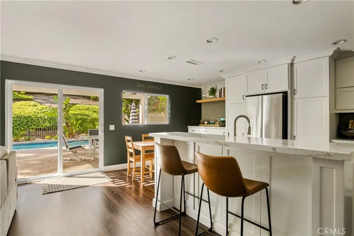 Nestled on a peaceful cul-de-sac in the highly desirable community of Mission Viejo, this beautifully appointed two-story home offers approximately 2,573 square feet of thoughtfully designed living space with 4 bedrooms and 3 bathrooms. The open-concept floorplan creates a seamless flow ideal for both everyday living and entertaining. The upgraded kitchen is the heart of the home, featuring quartz countertops, shaker-style cabinetry, stainless steel appliances, and a professional-style 6-burner stove. The kitchen opens directly to the cozy family room, where a warm fireplace creates an inviting space for gatherings and relaxation. Upstairs, a spacious bonus room offers flexible living space perfect for a media room, playroom, or home office. Step outside to a private backyard retreat designed for enjoyment year-round. The beautiful pool is complemented by low-maintenance artificial turf, a built-in fire pit, and a charming outdoor seating area—perfect for entertaining or unwinding in the peaceful, upscale surroundings. Additional highlights include solar, generous living spaces, and access to the many recreational amenities and outdoor opportunities that make Mission Viejo such a sought-after place to live.