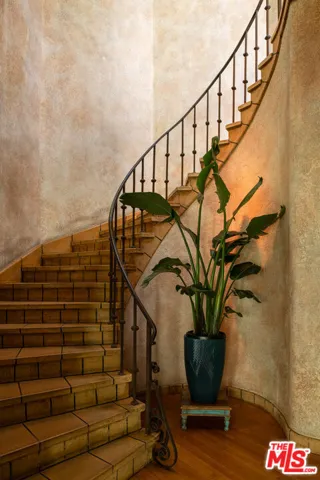 Ascend a beautifully manicured private drive to discover a storied piece of Glendale history. This 1927 estate stands as a testament to architectural preservation, featuring its original, never-painted stucco–a rare patina that whispers of nearly a century of sun and heritage. Positioned for ultimate privacy, the home offers beautiful, treetop views of the Verdugo Woodlands and the rolling hills beyond. Enter the formal foyer into a living room of grand proportions. A dramatic, oversized arched window serves as a living frame for the lush landscape, while a one-of-a-kind fireplace anchors the space with a sense of “cozy opulence.” Across the foyer, the formal dining room awaits, an expansive setting designed for high-concept entertaining. The cook’s kitchen strikes a balance between modern performance and original character, featuring a large Wolf range, custom wood island, and a massive pantry. Picture windows at the sink overlook a private courtyard, while an adjacent hobby room or office provides a charming retreat–complete with built-in cabinetry, a window seat, and original stained glass. A dramatic circular staircase, housed within a signature center tower and adorned with its original hand-painted details, leads to the private quarters. The primary suite is a sanctuary of natural light, offering French doors that open to a spacious terrace–the ultimate destination for stargazing. The suite is completed by a generous walk-in closet and a “time-capsule” bathroom featuring dramatic original tilework. Two additional bedrooms connect via a gallery hall, overlooking the secluded terraced hillside, and a vintage Jack-and-Jill bathroom. One of the bedrooms offers its own set of French doors, further blurring the line between the historic interior and the verdant outdoors. Follow the masonry stairs to a versatile lower level, currently arranged as a comfortable living room with an additional separate room used as a gym that could easily serve as a private office. Framed by a series of French windows opening onto a shaded patio, this high-ceilinged space also features an updated bathroom thoughtfully designed to complement the home’s architectural soul. With its flexible layout, dual closets, and scale, this floor could also function beautifully as a guest retreat or in-law suite. This is more than a residence; it is a rare opportunity to own a piece of architectural art. Exploring this property is an emotional journey through the history of Glendale, offering a lifestyle of “storied elegance” and profound privacy.
