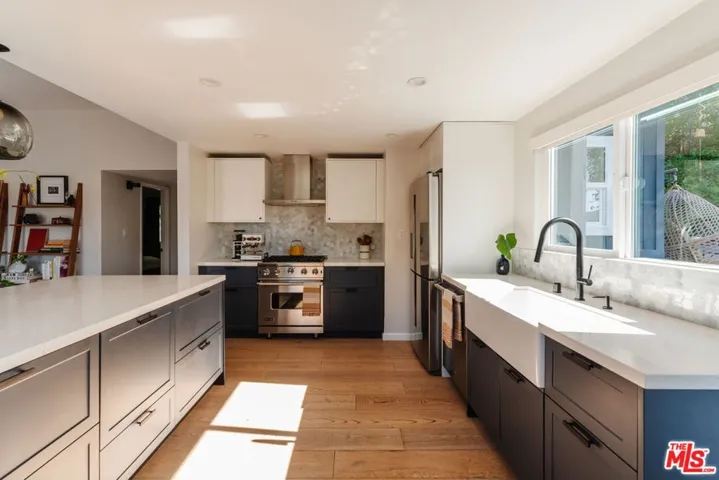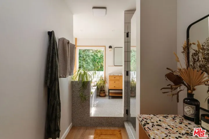Nestled in the prestigious PO Tract of Topanga Canyon, this modern, artsy cottage perfectly balances rustic charm with clean, contemporary lines and updated finishes. Allowing for easy access to the beautiful trails, this prime location across from Topanga State Park and moments from the town center offers a rare blend of secluded nature and easy access to both the Westside and the Valley. Inside, the home features an open-plan updated kitchen and living area designed for effortless flow, while french doors frame sweeping canyon views from its elevated vantage point and allow for easy access to the large deck for entertaining. The recently remodeled bathrooms feature terrazzo stone floors, countertops and beautiful designer finishes. The expansive sundeck and a tranquil garden wrap around the home, creating an ideal setting for entertaining amidst mature trees, whilst newly installed decks offer destinations that capture tree top and canyon views. The property also includes a recently remodeled, self-contained guest unit with its own private patio, completing this serene canyon haven. Updated with a rare blend of charm, quality and designer touches that the most discerning Buyer will appreciate, it has been maintained with a pride of ownership that combines for a very rare offering.