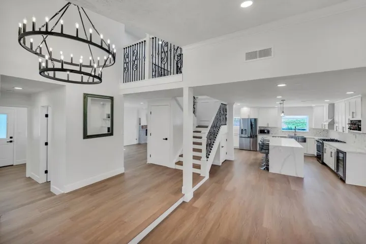 Experience refined living in this exquisitely renovated 4-bedroom, 2.5-bath residence, offering 2,359 sq ft of thoughtfully designed space, complete with a finished 2-car garage. Meticulously reimagined, the home showcases a true open-concept floor plan—ideal for sophisticated entertaining and seamless everyday living. Fully renovated with modern upgrades, this residence blends modern elegance with exceptional craftsmanship and long-term efficiency. At the heart of the home is a stunning, fully redesigned kitchen featuring new appliances, complemented by sleek vinyl flooring and fresh designer paint inside and out—creating a cohesive, contemporary aesthetic throughout and serving as the perfect canvas for the artist or designer at heart. No detail has been overlooked. Every room reflects a commitment to quality, from upgraded electrical throughout to ceiling fans with remote controls in each bedroom for personalized comfort. Custom shutters on every window enhance both style and energy efficiency, adding a polished, upscale finish. Step outside to a beautifully reimagined landscape designed with artificial turf, gravel, and decomposed granite—an eco-conscious setting that reduces water usage by approximately 90% while maintaining year-round beauty with minimal upkeep. Major system upgrades include a newer AC and furnace (2021), water heater (2023), and a whole-house water filtration system—offering enhanced comfort, efficiency, and peace of mind for years to come. The roof was replaced in 2011.Ideally situated in a highly desirable, family-oriented community of San Carlos