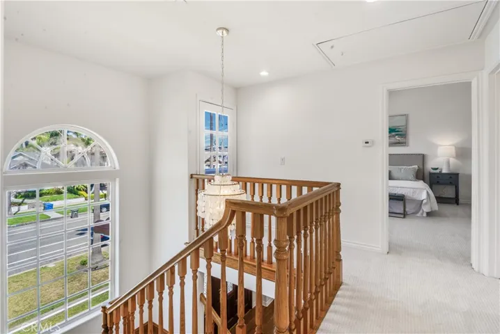 Upstairs, both bedrooms offer vaulted ceilings and updated finishes, with access to an ocean-view deck and balcony. The primary suite includes a walk-in closet and office nook. The spa-like bath features a soaking tub, separate shower, and dual vanities.