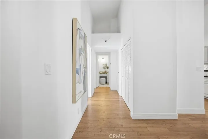 Located in Pacific Terrace, a luxury resort style gated community. Awesome location, at the Redondo Beach/Torrance border just a mile from the sand! This beautiful single-level condo offers 3 bedrooms and 2 full bathrooms in a desirable 3rd-floor end unit tucked quietly in the back of the complex, away from Torrance Blvd. Featuring 18-foot architecturally distinctive cathedral ceilings, this light-filled home combines style and comfort with hickory flooring, a beautiful kitchen with granite countertops and stainless-steel appliances, remodeled bathrooms, and the convenience of an in-unit washer and dryer. The primary suite is separate of the secondary bedrooms and enjoys privacy and seclusion. The west-facing balcony looks out to jacaranda trees known for their seasonal canopy of lavender blossoms. This attractive Mediterranean-style complex is gated, secured and features side-by-side subterranean parking (2 spaces), a private storage closet for each unit, elevators, central courtyard, pool (under renovation), 2 workout rooms, meeting room; basic cable & internet included in HOA fees and earthquake insurance too. Close to Anza Elementary, Bishop Montgomery High School (private) is next door, a mile to Little Company of Mary hospital. Alta Vista, Hopkins Wilderness, and Paradise parks are nearby. Convenient to Del Amo mall, Kings Harbor, and central Redondo Beach.