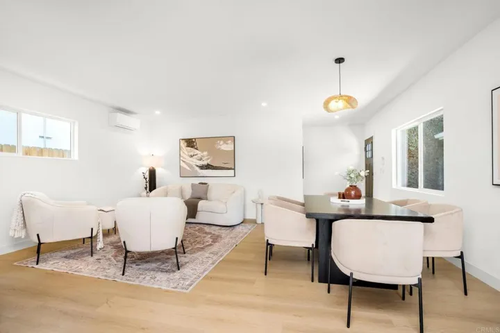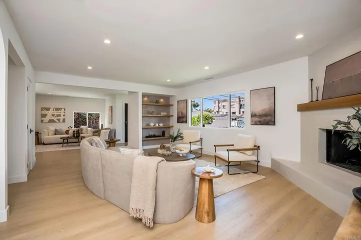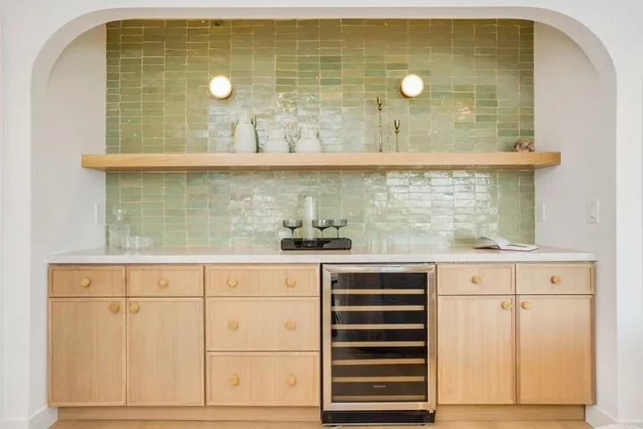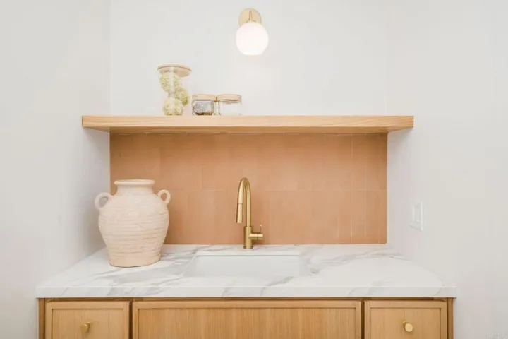 Masterfully remodeled from the inside out, this Culver City residence delivers designer-level finishes at every turn — from the main house to a fully self-contained ADU. A modern stucco exterior framed by new horizontal-slat metal fencing and a gated driveway sets a confident tone at the curb. Inside, wide-plank blonde hardwood floors carry through light-filled, open-concept living spaces anchored by a wood-mantled fireplace. An arched dry bar niche clad in sage zellige-style glossy tile — complete with a floating oak shelf, gold sconces, and wine fridge — adds a moment of drama off the main living area. The kitchen brings the design energy forward with two-tone slim shaker cabinetry in white and white oak, a quartz waterfall island with counter seating, a glossy zellige mosaic backsplash, and gold-tone hardware throughout. The primary suite is generous and serene, opening to the backyard via a slider. Its spa-caliber en suite features a floating white oak vanity with marble-look countertop, wall-mount gold faucets, patterned wallpaper, and a frameless glass shower with honed porcelain shower walls, pebble mosaic floor. Each additional bath carries its own design identity — from the bold terracotta checker tub surround to a third bath with a sculptural wavy-framed mirror and refined porcelain shower. A generous grassy yard with concrete patio and tropical plantings connects to the fully equipped 1 bed/1 bath ADU — white oak cabinetry, gas cooktop, porcelain shower tile with gold fixtures, and a cane-front vanity with arched mirror and gold sconces. Private alley entrance. All-new windows, doors, and HVAC throughout. Minutes from Downtown Culver City’s dining and nightlife, Ivy Station, and the tech and creative campuses that define the city’s modern identity, with easy freeway and Metro access.