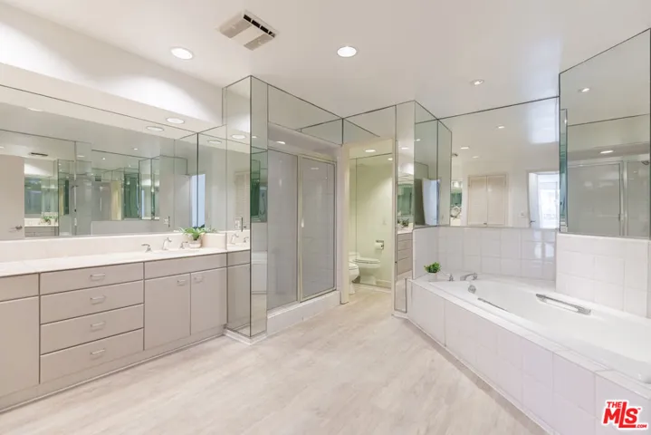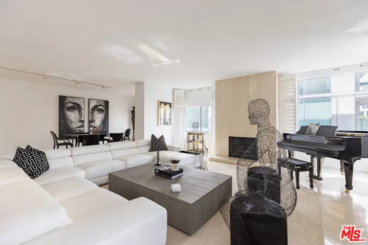 Gorgeous 2 bedroom, 2.5 bath, spacious, front facing, 4th floor unit located in the heart of Beverly Hills within a close distance to Rodeo Drive, Canon Drive, Beverly Drive, and the Golden Triangle. Just steps to the Mandarin Oriental Beverly Hills, with upcoming Michelin level restaurants set to further elevate Beverly Hill’s world class dining scene and incredible lifestyle. Facing front with abundant natural light, and modern, open flowing living spaces designed for both everyday living and entertaining. Interior features include a stunning floor-to-ceiling travertine fireplace, neutral marble floors, and a built-in dining buffet/bar. A lovely balcony off the living and breakfast rooms offers space for outdoor seating and morning coffee. Kitchen includes ample cabinetry, generous counter space, and a sunlit breakfast area. Two en-suite bedrooms, including a spacious primary suite with walk-in closet, and a spa style bath with dual vanities, spa tub, separate glass shower, and glamorous vanity dressing area with extensive storage and closet space. Side by side laundry in unit with additional storage. Central Heat and Air. Service entrance. Secure building with wireless entry. Amenities include rooftop deck with BBQ and city views, fitness center, yoga room and community lounge with kitchen for entertaining or holiday needs. Gated, remote controlled garage with 2 tandem parking spaces. Guest street parking available by permit. Incredible location near Beverly Hills luxury shopping, fine dining, cafes, fitness studios, schools and major cultural destinations. Close to Cedars-Sinai, Century City, West Hollywood, and major Los Angeles commuter routes. Ideal for those seeking a Beverly Hills condo with walkability, generous square footage, wonderful dining and shopping nearby, along with the safety and security of the prestigious Beverly Hills lifestyle.