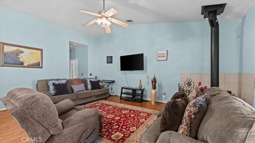 Welcome to 16112 Century Plant Rd in Apple Valley, a truly one of a kind estate offering space, privacy and endless possibilities on a fully fenced and cross fenced one acre lot with breathtaking views in every direction. This exceptional pool home is designed for both comfort and functionality featuring five separate cross fenced yard areas with easy access gates ideal for animals, storage or creating your own private outdoor spaces. A private recorded side road provides convenient access to the rear of the property making it perfect for RVs, trailers and all your toys complete with a 50 amp hookup for easy plug in. Step into your own backyard retreat where a sparkling pool with waterfall is surrounded by vinyl fencing along with solar tube panels dedicated to pool heating plus a above ground jacuzzi. Enjoy outdoor living with two covered patios one with a ceiling fan, two oversized pergolas with privacy blinds and a beautifully designed rock and brick entertaining area. The property also features a dog kennel, rear carport and multiple functional outdoor zones including a paver side yard that can serve as a garden, dog run or additional storage space. Inside the home offers approximately 14 foot ceilings, skylights for natural light and ceiling fans throughout. The spacious living room features a cozy fireplace while the primary suite is a true retreat with its own fireplace, double door entry and unique architectural design. The primary bathroom includes a Victoria and Albert soaking tub, dual vanities, stained glass accents and a large walk in closet. The kitchen and dining areas offer abundant cabinetry, a walk in pantry with a stained glass door and a breakfast nook just off the kitchen. An added bonus is the detached exterior room with its own heating and air conditioning perfect for a home office, gym or guest space complete with French doors and natural light. Additional features include 30 solar panels on the home, a new 50 amp RV outlet, a brand new water heater built to current standards, a second water heater installed in 2017, updated toilets in two bathrooms, a new water pressure regulator and a solar diverter installed in the garage in 2024. This property offers the rare combination of privacy, versatility and lifestyle with room to bring all your toys, create your own spaces and enjoy peaceful desert living.