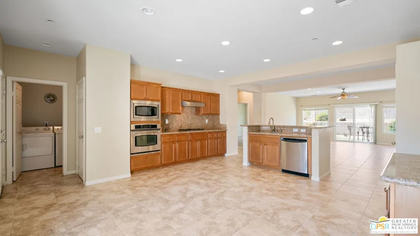 Spacious, well-designed, and filled with natural light, this Palm Springs home offers an expansive open-concept layout within the gated Mountain Gate community known for its low HOA, resort-style amenities, and convenient access to all that Palm Springs has to offer. Ideally situated toward the center of the community, this home enjoys a more private setting with added protection from exterior highway noise and wind, creating a quieter, more comfortable living environment. A private courtyard entry creates a welcoming sense of arrival, leading into a bright interior with high ceilings and generous living spaces. The main living area flows seamlessly into the kitchen and dining areas, creating an open environment ideal for both everyday living and entertaining. The kitchen features granite countertops, abundant cabinetry, stainless steel appliances, and a center island that connects effortlessly to the great room, complete with a fireplace and direct access to the backyard. The primary suite is privately situated and generously sized, offering direct outdoor access, a large walk-in closet, and an ensuite bath with dual vanities, soaking tub, and separate shower. Additional bedrooms are well-proportioned and thoughtfully separated, including an attached casita with its own access to the courtyard, perfect for guests, a home office, or flexible living. Step outside to a private backyard with mature landscaping, multiple seating areas, and scenic mountain views, creating a peaceful setting with room to relax or entertain. The courtyard offers an additional outdoor living space, ideal for morning coffee or evening gatherings. Mountain Gate residents enjoy access to multiple community pools and spas, tennis and basketball courts, greenbelts, and walking paths, along with a pet-friendly environment that includes a dedicated dog park, making it easy to enjoy an active desert lifestyle with your four-legged companions. With low monthly HOA dues and fee land ownership, the community offers exceptional value within a gated setting. Ideally located just minutes from downtown Palm Springs, shopping, dining, and easy freeway access, this home presents a rare combination of space, privacy, and lifestyle in one of the area’s most desirable communities. Easy to show.