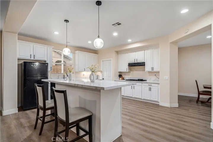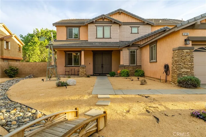 Stunning Two Story Palmdale Home with a Modern Upgraded Interior! Welcome to this beautifully upgraded residence that blends comfort and contemporary style. Enter through grand double doors into a striking foyer with cathedral ceilings and a chandelier that creates a memorable first impression. Recessed lighting and upgraded flooring carry throughout the home, leading into a spacious living area designed for both everyday living and entertaining. The kitchen features quartz countertops, white cabinetry, pendant lighting, bar seating, and a large center island, and opens seamlessly to the family room with a fireplace and a formal dining space. The main level also includes a bedroom and full bathroom, ideal for multi generational living or guests. Upstairs, a large loft offers flexible space for a media room, office, or play area and connects to the primary suite. The primary bathroom includes dual vanities, quartz countertops, a soaking tub, a glass walk in shower, and a walk in closet, while the secondary bathroom also features dual vanities for added convenience. The front yard showcases drought tolerant landscaping with decorative rock accents and a charming wooden bridge, and the expansive backyard provides plenty of room for entertaining, relaxing, or creating your ideal outdoor space. This home offers a thoughtful layout with modern upgrades and inviting spaces throughout. This Modern Upgraded Palmdale home is truly a must-see! Schedule your private tour today and experience this remarkable property for yourself!