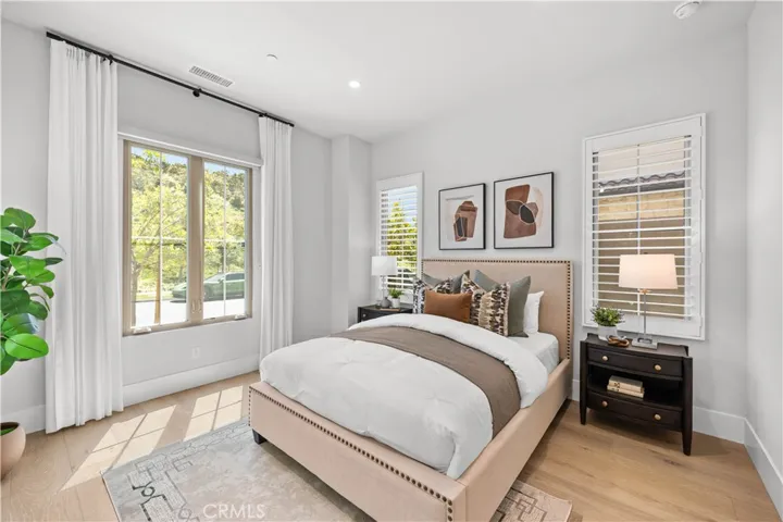 Nestled on a single loaded street within the prestigious gated enclave of The Groves at Orchard Hills, this newer home offers an exceptional blend of privacy, luxury and functionality. Appointed with $300,000 in designer upgrades, this residence features 4 bedrooms, 4.5 baths, with 3,361 sqft living space on a 5,130 sqft lot, presenting avocado orchard view surrounded by nature. Walking through the front door, you’ll pass by the downstairs bedroom and full bath with upgraded shower wall, flooring and floating mirror. Louvre Collection Aged French Oak hardwood throughout the first floor. Spacious living room with high ceiling and cozy fireplace, sliding door to a private and low maintenance backyard with trees, flowers and artificial grass. Highly upgraded gourmet kitchen with a large island, designer color cabinets, quartz countertop with beautiful movement, and selected backsplash. Top-of-the-line appliances like Sub Zero 42” French door built-in refrigerator, Wolf 48” Stainless steel 6 burner gas stove with griddle, double oven, microwave, single basin sink, and luxury faucet. Prep kitchen with Wolf stove, sink, custom shelf and glass French door to the yard, better than the model! Dining room with picture window. Upstairs you will find an enclosed loft, perfect for a library/den/family room. Expansive primary bedroom, bathroom with double sinks, free-standing tub, shower room with wall-to-wall tiles, two walk-in closets and storage cabinets. Next, you’ll encounter 2 en-suite guest bedrooms with amazing avocado orchard views, offering relaxation and privacy. One of the guest rooms has a private balcony. The large laundry room is designed to feature a deep sink and ample cabinet storage space. Attached two-car garage with epoxy flooring. Paid off solar. Close to award-winning Tustin schools. Resort-style community amenities include swimming pools, club house, tot lot, barbecue and picnic table, tennis court, basketball court, etc. This house is a must see!