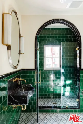 Grand-scale 1928 Spanish villa with a distinct Moorish flair, rich in original detail and unforgettable character. Privately gated and secure with cameras, this romantic Los Feliz residence features one of the most dramatic baronial entry staircases you’ll ever see, complete with stained glass windows and a minstrel’s balcony. The spectacular step-down living room showcases vaulted beamed ceilings, a fireplace, arched windows, and inlaid pegged wood plank floors. A beautiful formal dining room overlooks the lushly landscaped gardens and pool, while the gourmet kitchen with center island and walk-in pantry opens to a sunny, private patio. The den/family room offers a coffered ceiling, fireplace, and custom cabinetry. Throughout the home are graceful arches, French doors and windows, decorative ironwork, recessed shelving, balconies, original bath tile, and period fixtures and finishes. Three bedrooms and an office are upstairs, including a spacious primary suite with ample closet space and a lovely balcony, plus one bedroom downstairs. A rare and beautifully maintained romantic Spanish town villa with huge rooms, timeless elegance, and extraordinary architectural presence.